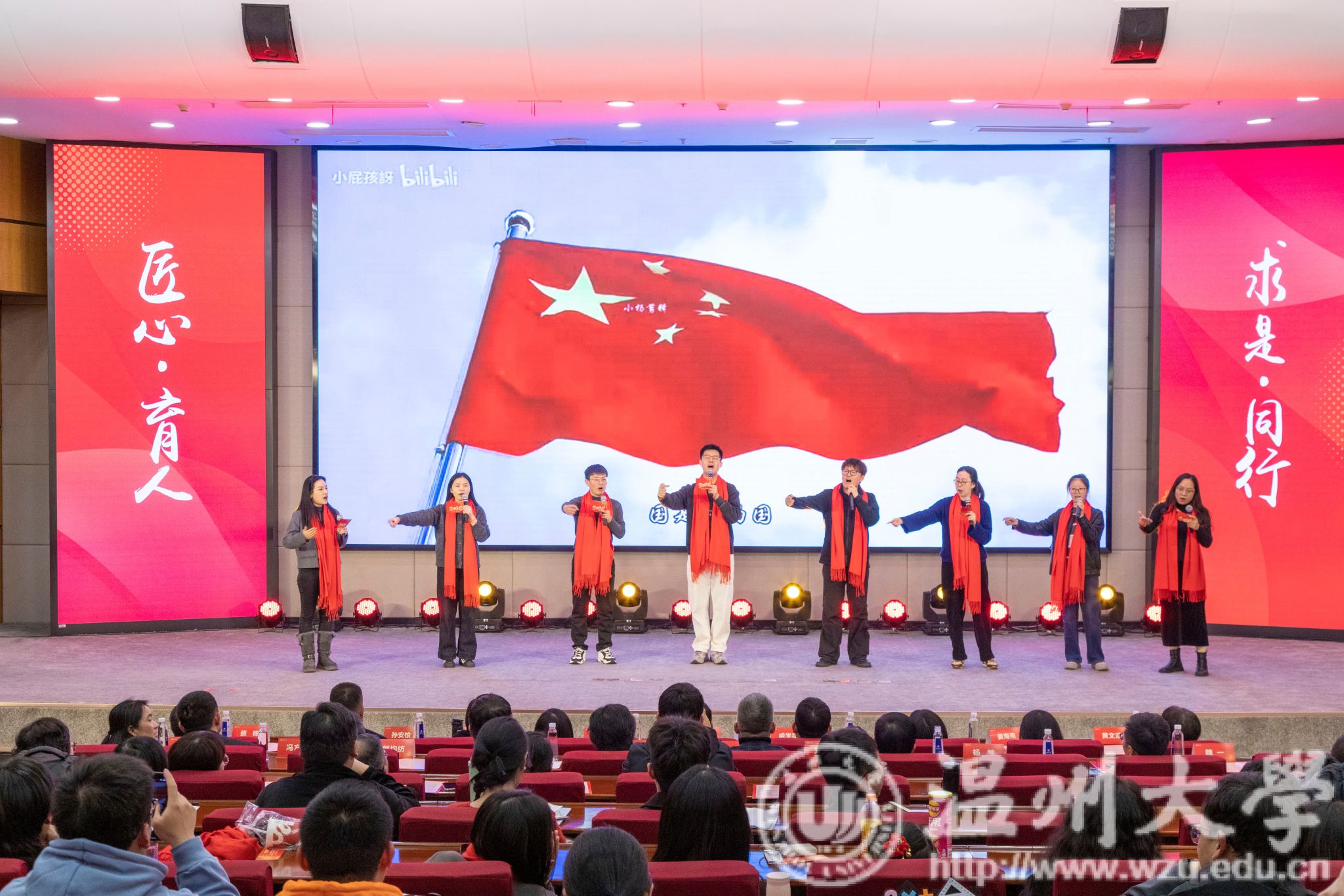“所有收获的小美满,都与学生有关。” “夏天会过去,秋刀鱼会过期,但你的辅导员永远会在背后等你。”首届辅导员歌唱大赛吸引来自全校18个学院的辅导员们各展“十八般武艺”。一曲《敬业阵线联盟》,唱出了对学生工作的赤诚热爱;一首《再回首》,回首那些关于青春、成长与回忆的美好瞬间。辅导员们结合朗诵、舞蹈或乐器演奏等形式创意编排,将日常学生工作中的心得体会与切身感受融入旋律和音符里,以歌传情,以艺载道。现场掌声雷动,气氛热烈温馨。