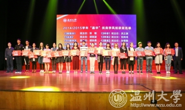 会议表彰了荣获谷超豪奖学金、国家奖学金、陈国同“明日教师奖”、“嘉华”优良学风班、“嘉华”学习标兵、学科竞赛和“自强之星”等先进集体和优秀个人。阿联酋温州同乡会会长林时永讲话,勉励“自强之星”获得者。国家奖学金、谷超豪奖学金获得者董天园,“学习标兵”获得者陈文萍、“浙江省首届互联网+大学生创新创业大赛”银奖获得者韩琪,“自强之星”获得者陈婷婷、温馨,2013届毕业生代表陈学茂,家长代表“自强之星”获得者刘海洋的母亲等分别发言,他们真诚、动情和精彩的讲述赢得了现场阵阵掌声。 会后,陈国同与“明日教师奖”获奖学生,阿联酋温州同乡会一行与“自强之星”获得者分别座谈。 据悉,2015年我校共评选出20个优良学风班,18位学习标兵;评选产生省级优秀毕业生127人、校级优秀毕业生595人、三好学生3379人;8948人次获各类国家级、校级奖助学金;学生参加学科竞赛获得国际级奖项9项、国家级奖项121项、省级奖项478项。全校7773人次学生共获得近1683万元资助,贫困生人均受助6813元,受助面占在校生的20%。其中787名贫困生共计1477人次获得奖学金。 近年来,我校紧紧围绕人才培养目标的具体部署,坚持“强化制度保障、创新技术平台、注重分类指导”三项原则,大力推进学风建设。建立专业人才培养标准,以目标促学风;完善考评机制,以制度促教风;发挥教师主导作用,以教风促学风;创新优化学生工作体系,助力优良学风建设,深入实施“五温工程”五大举措,确保学风建设制度落地。
