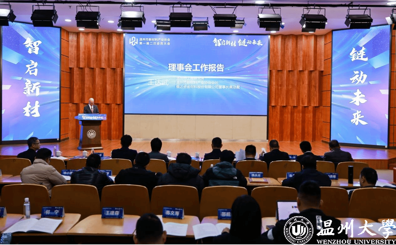 王达武代表理事会做工作报告。他表示,下一步,温州市新材料产业协会将紧密围绕国家战略目标和会员发展需求,让新材料产业在我市经济社会发展中的地位更加突出,为将温州打造成为世界一流新材料基地贡献协会力量。
