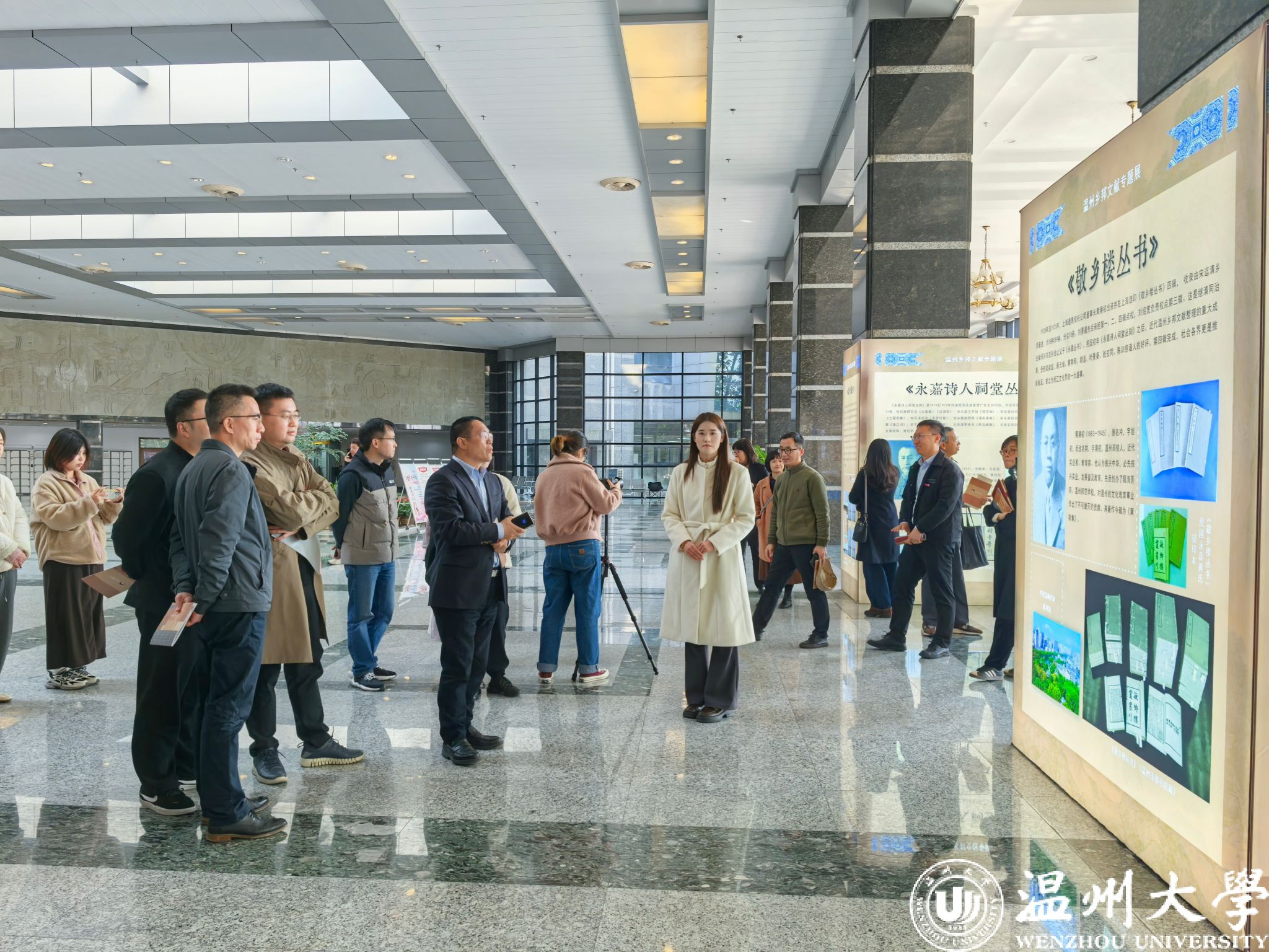 王舜致开幕辞。他高度肯定了展览的学术价值与文化意义,强调乡邦文献是瓯越文明的“精神基因库”。他指出,从孙衣言刊刻《永嘉丛书》到当代《温州大典》的编纂,历代温州学人以文献赓续文脉,既彰显了“敢为天下先”的精神底色,也为城市发展注入文化动能。他认为可以通过“校地协同、数字赋能”让典籍“活起来”,同时呼吁青年学子成为文化解码者与传播者。他期待以文献研究提炼文化基因,推动“AI+人文”跨界融合,让千年文脉在数字时代焕发新生,助力温州打造既有历史厚度又有创新锐度的文化新高地。