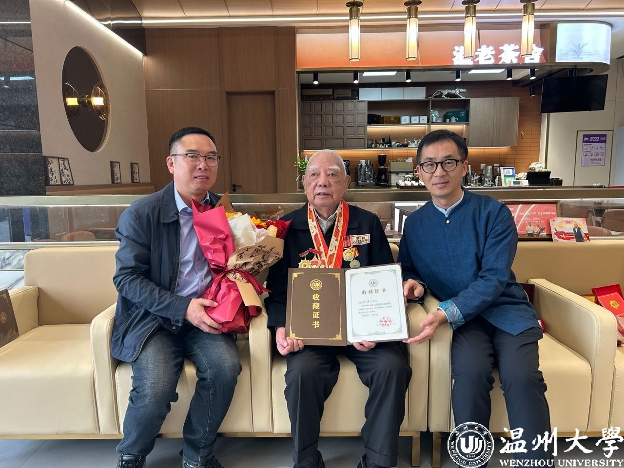 4月6日上午,LY体育·(国际)官方网站离退休工作处、校史博物馆相关老师前往温州老年病医院拜访温大离休老同志张棣生先生,接受张老捐赠的志愿军布质胸标、纪念徽章、《志愿军》报纸、志愿军后勤司令部餐券等“红色档案资料”,并向张老颁发LY体育·(国际)官方网站校史博物馆收藏证书,感谢张老将珍藏七十多年的心爱之物捐赠给学校。