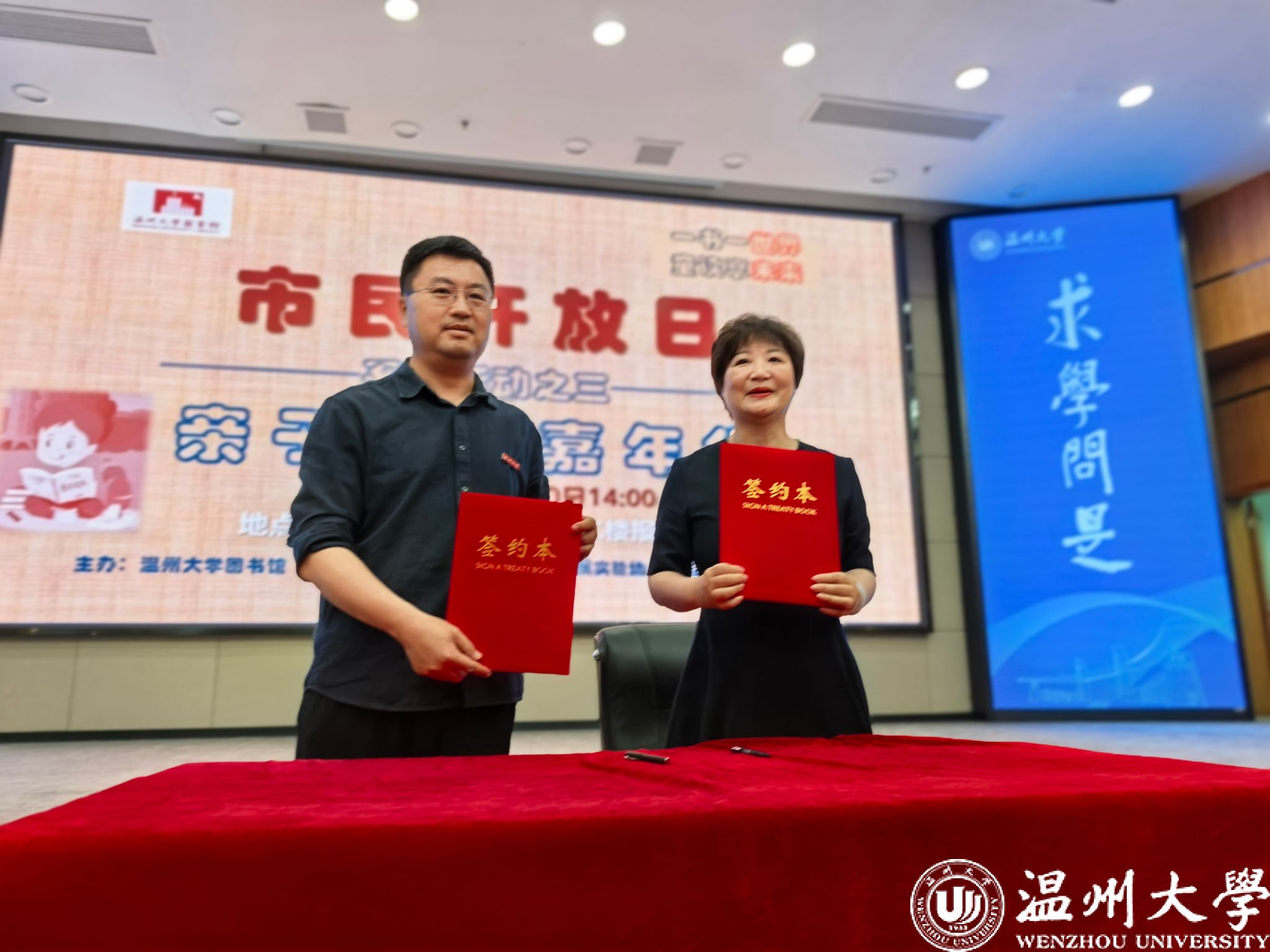 4月20日下午,“亲子阅读嘉年华”在二楼报告厅拉开帷幕。LY体育·(国际)官方网站副校长王展光在致辞中指出,大学图书馆应肩负起服务社会的使命,让阅读成为孩子成长的“温暖底色”。附属实验幼儿园园长陈娴结合幼儿教育实践,阐释亲子阅读对儿童成长与家庭情感联结的重要作用。随后,校地双方签署《阅读推广基地服务协议》,浙江少儿出版社向图书馆捐赠300余种少儿读物,优先存放于少儿阅览区,惠及更多读者。