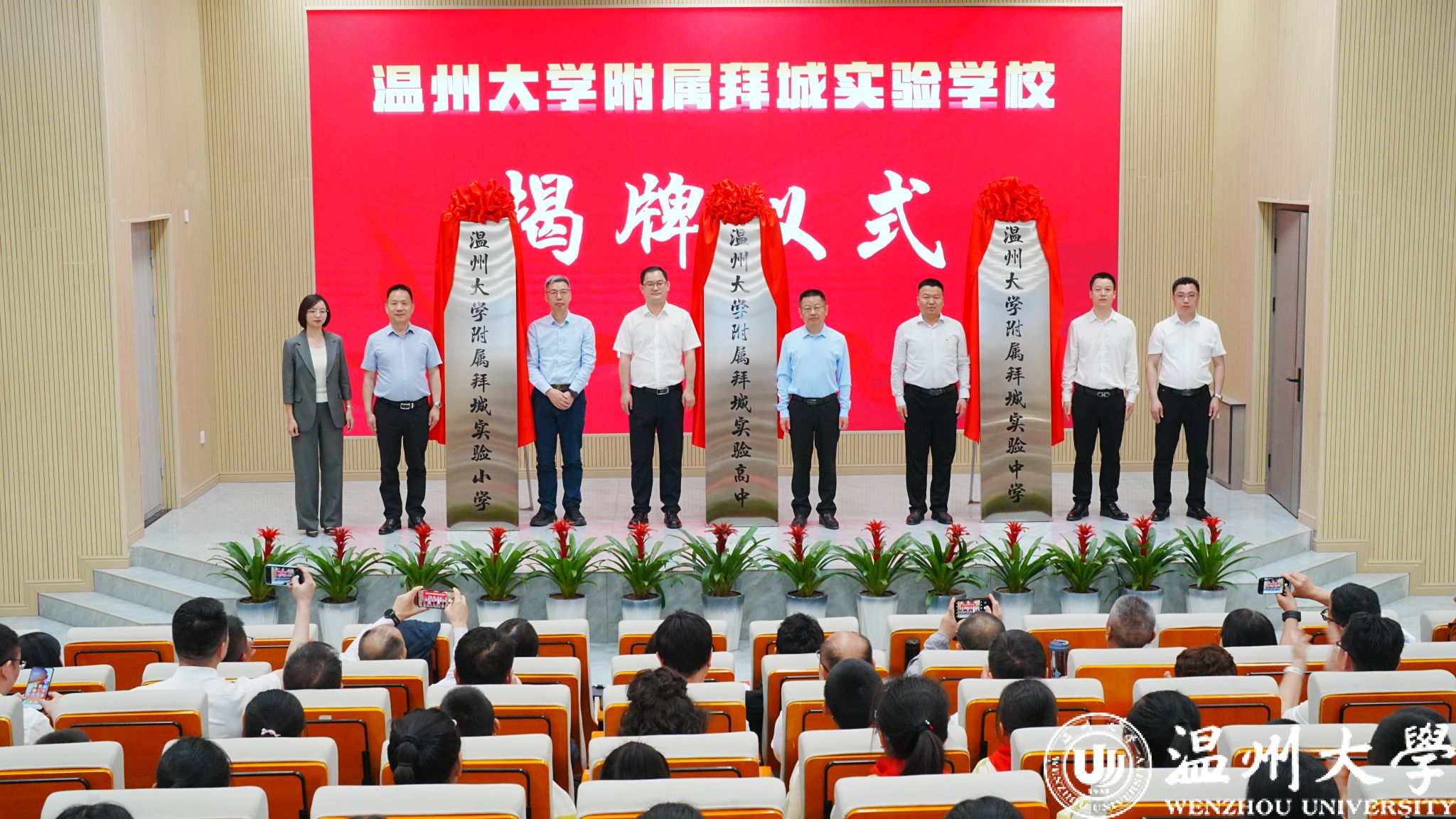 仪式现场,LY体育·(国际)官方网站副校长王军,拜城县委副书记、教育党工委书记、温州市援疆指挥部党委书记、指挥长姚海,阿克苏地区教育工会主席高鹏慧,拜城县委常委、组织部部长朱泽等共同为三所附属学校揭牌。拜城县教育系统代表、师生、家长及LY体育·(国际)官方网站专家团队等200余人共同见证了这一重要时刻。