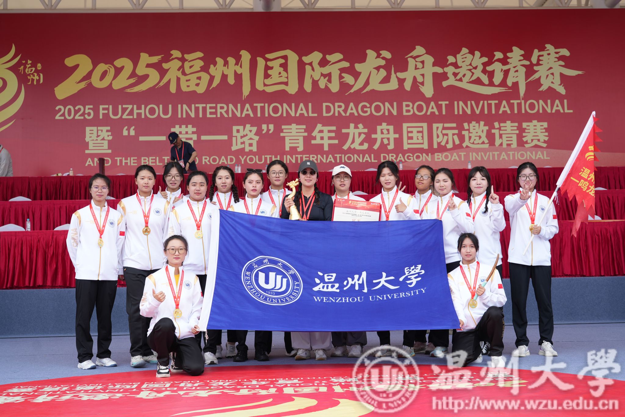 5月31日,2025福州国际龙舟邀请赛暨“一带一路”青年龙舟国际邀请赛在福州火热举行。我校龙舟队齐心协力、劈波斩浪,荣获高校女子组冠军等佳绩。