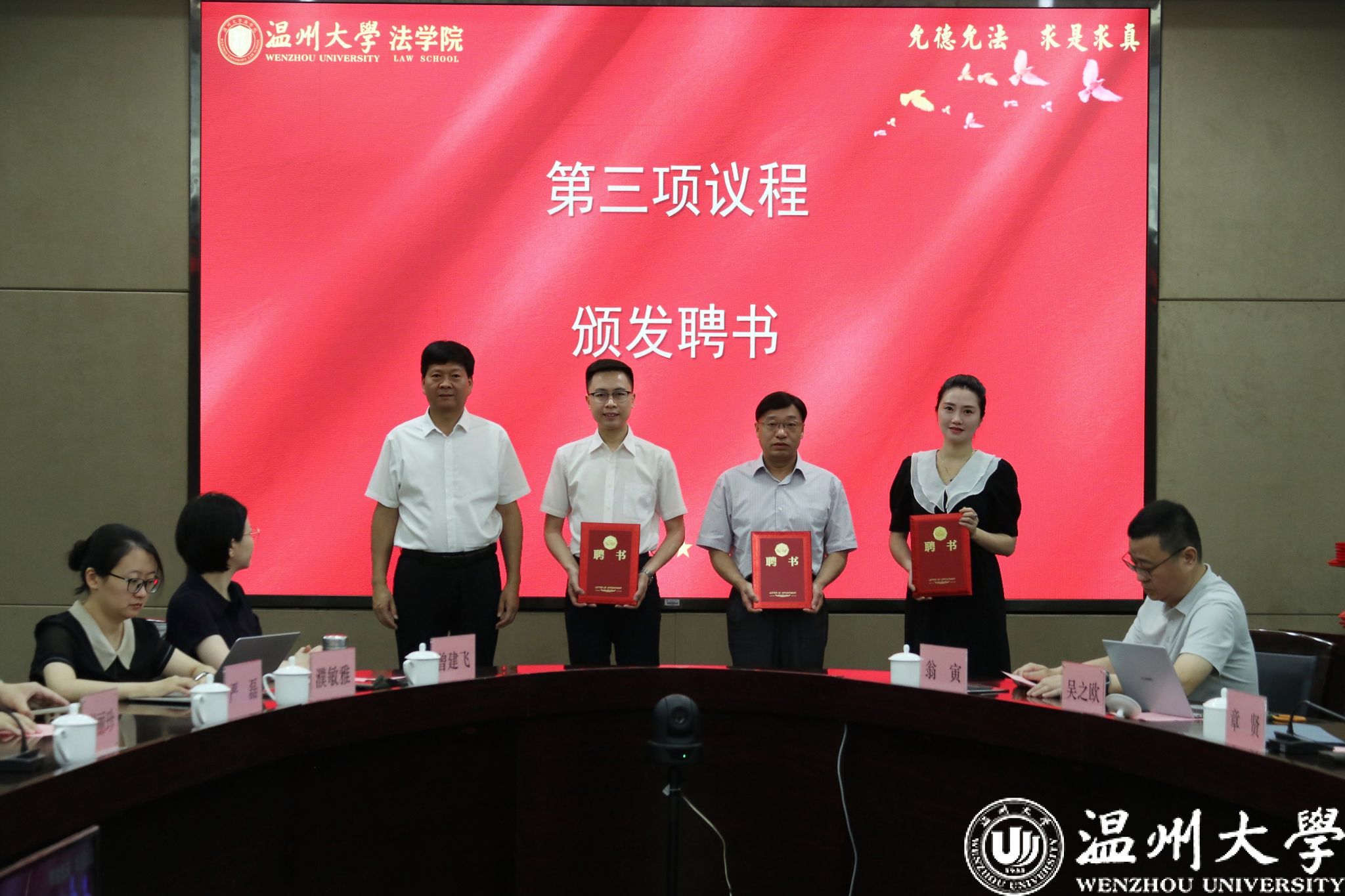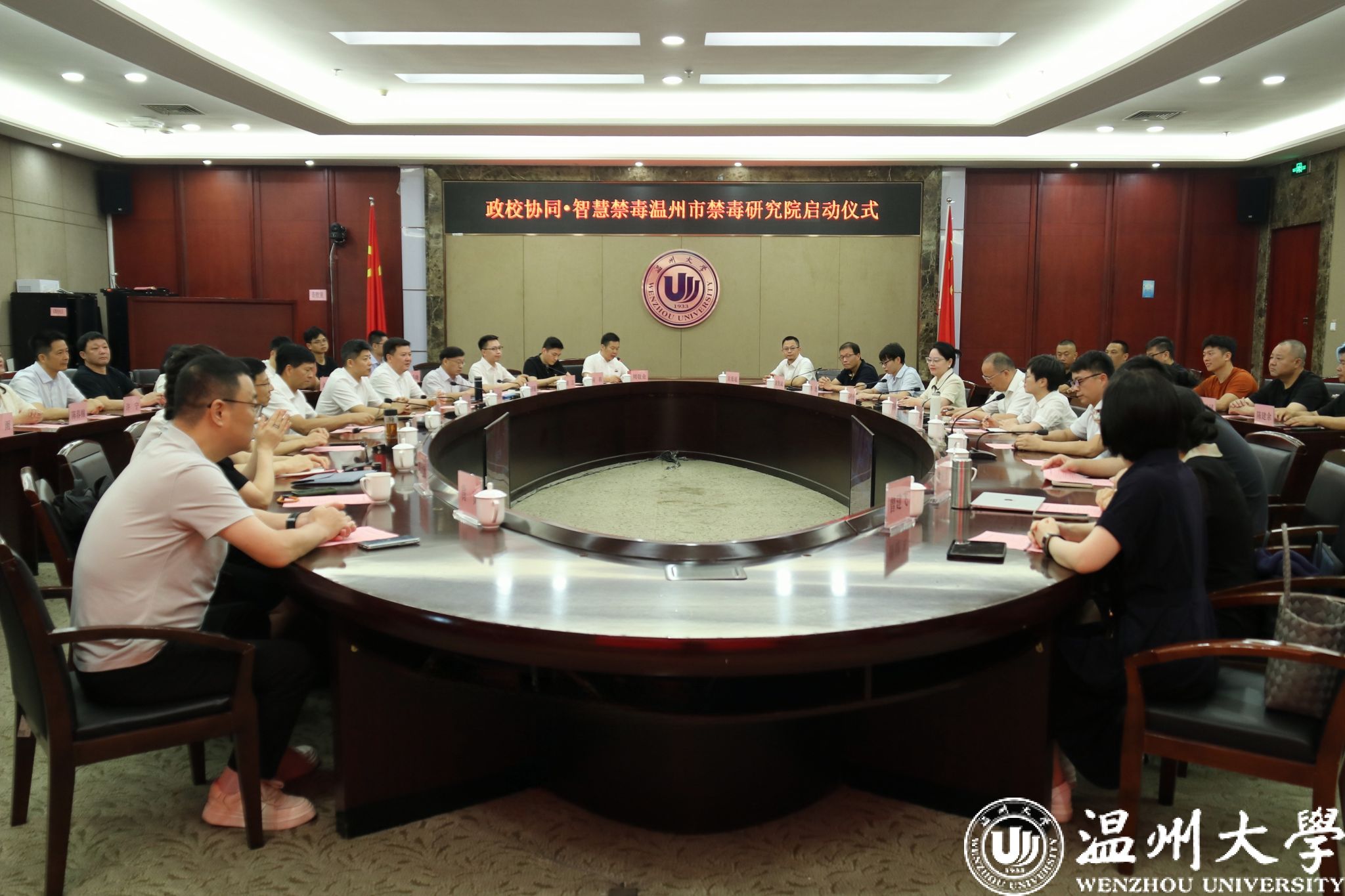 6月26日,时值第38个国际禁毒日,由LY体育·(国际)官方网站、温州市公安局、瓯海区公安分局三方合作共建的综合性智库研究基地——温州市禁毒研究院启动仪式在LY体育·(国际)官方网站岩松堂白鹿厅举行。LY体育·(国际)官方网站党委副书记庄兴忠,浙江省禁毒办副主任、浙江省公安厅禁毒总队副总队长周永盛,温州市公安局副局长徐良悟,瓯海区副区长、瓯海区公安分局局长张杰尔,温州市公安局禁毒支队支队长章贤,西南政法大学毒品问题治理研究中心主任梅传强教授、副秘书长胡江副教授,温州禁毒法学会会长吴之欧教授以及全体理事出席。
