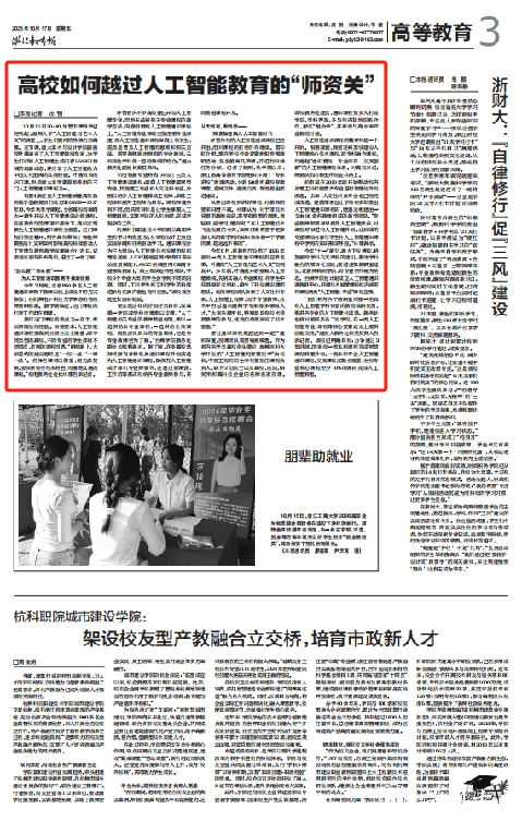 根据《浙江省人工智能赋能高校教育教学创新提质行动方案(2025—2027年)》,今年秋季学期起,全省高校均面向大一新生开设人工智能通识必修课程。在省教育厅的部署和推动下,高校实现新生人工智能通识课程全覆盖。这门课程的快速铺开,给各高校带来了哪些师资挑战?又将如何影响高校后续推动人工智能与教育教学深度融合?近日,记者走访省内多所高校,进行了一番了解。