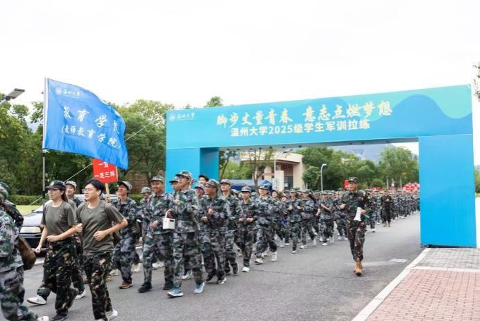 在“铸魂”育人方面,军训注重价值引领。在12.8公里拉练途中,学院组织新生在三垟湿地榕园内聆听习近平总书记植绿护绿的感人故事,将生态文明理念深植于心;通过严格的军事训练,培养学生“学高为师,身正为范”的师者风骨,筑牢立德树人的思想根基。在拉练过程中,迷彩队伍穿梭于湿地绿道,军歌嘹亮,气势如虹,展现了教育学院学子昂扬向上的精神风貌。