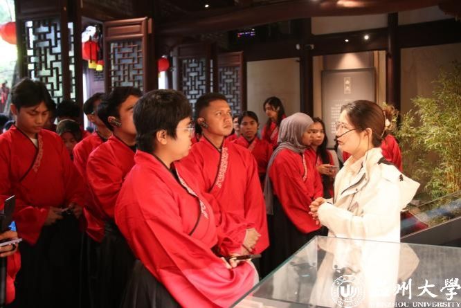活动首日,学员们身着典雅汉服,在孔子文化公园庄严肃穆的孔子像前整齐列队、合影留念,衣袂飘飘间尽显对中国传统文化的敬畏之心,也开启了与南孔文化的深度对话。随后,孔子学院汉学生一行走进孔氏南宗家庙,在讲解员的引导下,逐一参观家庙内的殿宇楼阁、碑刻文物,详细了解孔氏家族南迁衢州后,如何坚守儒家文脉并推动其在南方的传承发展,深刻体会"东南阙里、南孔圣地"的文化分量。