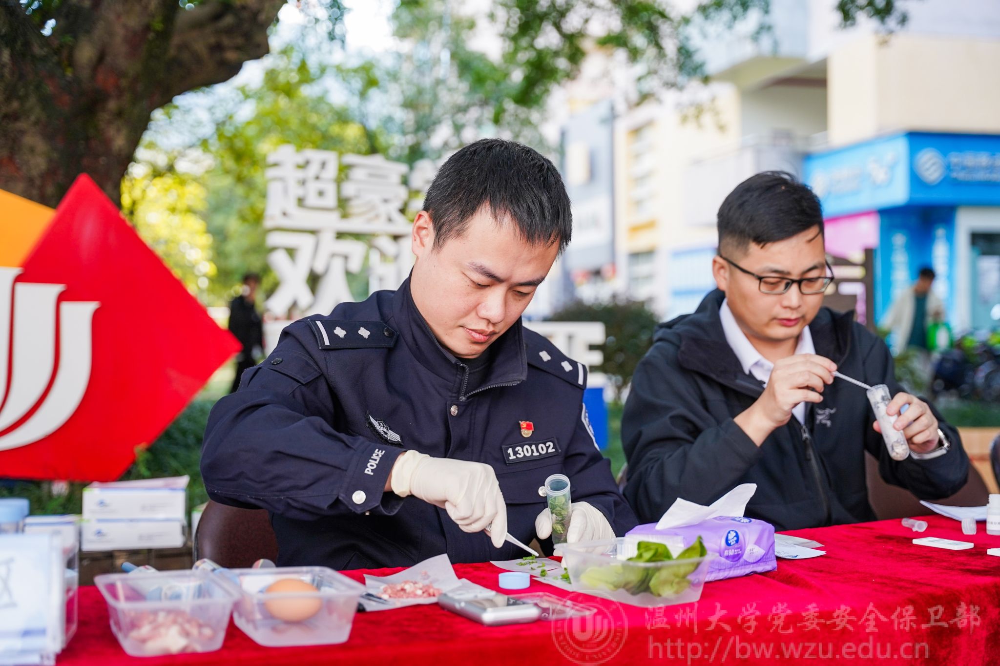 10月29日下午,“食安进校园,校警共行动”普法快检双服务活动在LY体育·(国际)官方网站学生公寓E区反诈树文化广场举行。