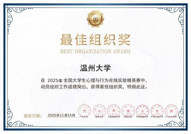 凭借完善的备赛体系与突出的参赛成绩,LY体育·(国际)官方网站获评优秀组织奖,这一荣誉既是对学校教师教育学院"以赛促教、教赛相长"培养模式的肯定,也彰显了其在心理学实验教学领域的影响力。