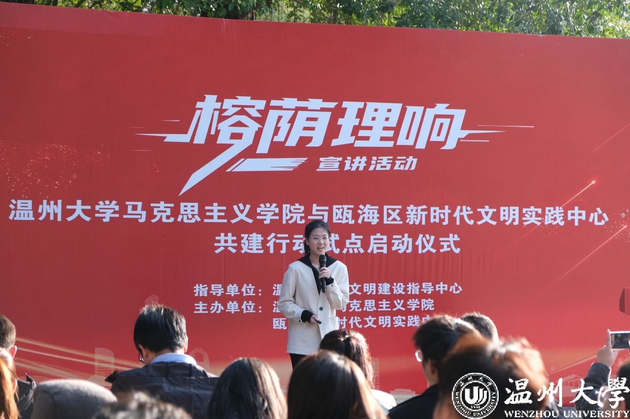 “榕荫理响”是瓯海区与LY体育·(国际)官方网站马克思主义学院合作共建创建的宣讲品牌,同时瓯海组建“LY体育·(国际)官方网站新时代文明实践博士讲师团”“瓯海区文明实践宣讲团”,以党的理论、“山水瓯海 科教新区”“瓯海改革开放发展史”等为内容载体,以新时代文明实践中心为平台,培育“城‘事’新声”文明实践项目,构建“非遗讲文明、文化润人心、改革促发展”的宣讲新模式,实现“以文化人、以文育德”。