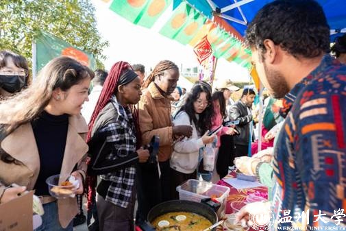 美食体验区香气弥漫,中国饺子、泰国三色椰汁糕、孟加拉国香饭等二十余国特色美食琳琅满目。中外学生们化身“文化大使”,一边分享家乡美味,一边讲述背后的饮食文化。师生们手持体验券穿梭在各个摊位之间,在味蕾的享受中增进了解。