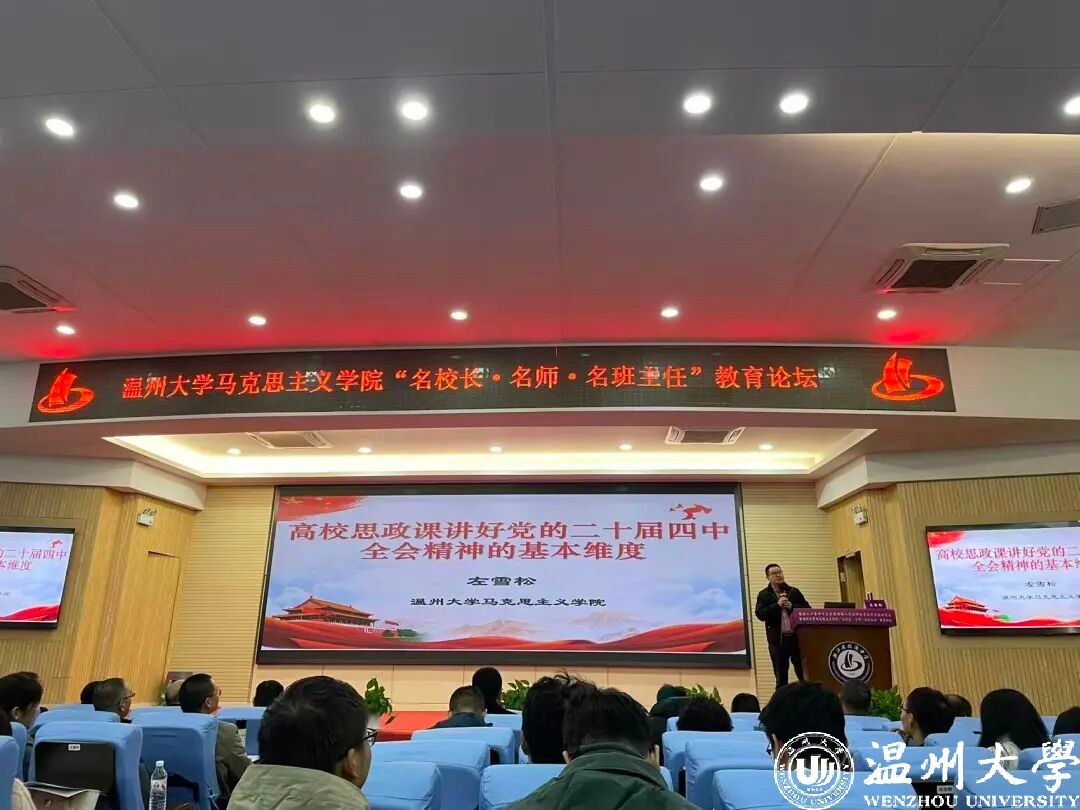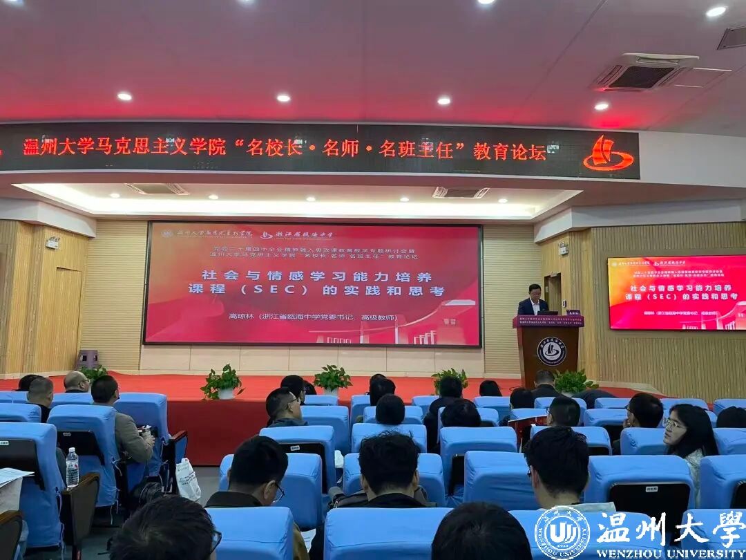 为深入学习贯彻党的二十届四中全会精神,推动党的最新理论融入思政课建设,推进大中小学思政教育一体化建设,搭建高校马院与中小学协同育人的平台,11月29日,党的二十届四中全会精神融入思政课教育教学专题研讨会暨LY体育·(国际)官方网站马克思主义学院“名校长·名师·名班主任”教育论坛在瓯海中学举行。