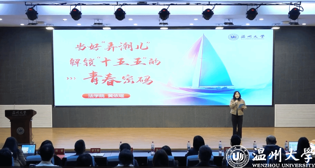 与此同时,其他宣讲员也从不同维度阐释了创新理论的丰富内涵:思政课教师安保国从优化话语建构、完善话语传播、推动话语融通三方面,阐述如何不断提升中华文明传播力影响力;辅导员李金伟通过三通特别的来电解码浙江共富密码;青年宣讲员吴想想同学以“‘侨’这三十年”为题讲述广搭连心“侨”、赓续“浙”血脉的故事;青年宣讲员柯欣妤同学以温州皮鞋的蜕变为主线,讲述政商亲清带来的企业兴旺、经济繁荣的故事;青年宣讲员潘奕瑶同学聚焦温州“十四五”基建突破与“十五五”城乡协同战略,呼吁青年将个人成长融入区域发展,以青春之力共建山海共富新格局。