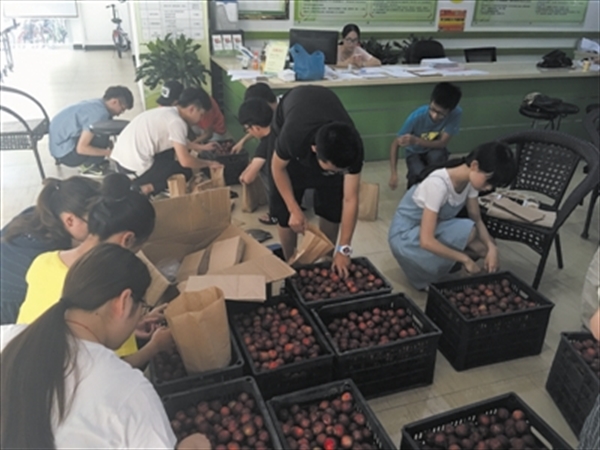 当最后的一个包裹被打包完毕之后,辅导员翁浩与同学们都松了一口气。这一天内,9支大学生创业团队合力帮助乐清农户卖出了1700多斤牛心李。将鼓励大学生创业与爱心助力农户相结合,这是温大超豪学区近期在探索的一项团学工作新模式。