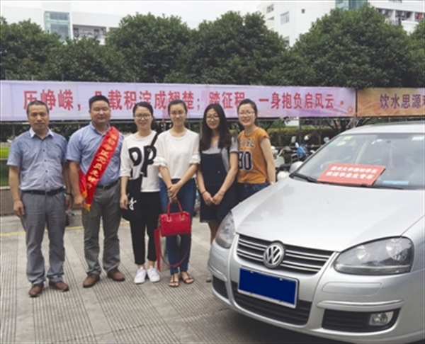 6月15日,温大教师教育学院学前毕业生范晓琴搭乘着温大溯初学区党委副书记章志图老师的“送别专车”离开了学校。她将坐着老师的车子前往动车站回家,离别时姑娘的眼眶都红了:“我们都毕业了,学校还对我们这么好,老师还这么关心我们。”近日,温大老师们自发组成“欢送毕业生志愿者服务队”,为学生提供专车送行服务。