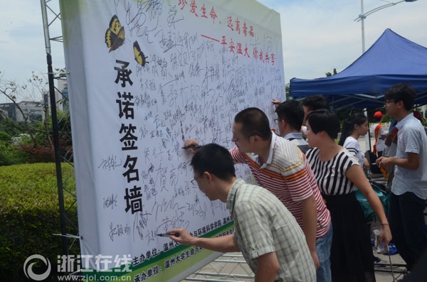 (温大师生们郑重地在承诺签名墙上签字)