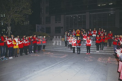 晚报讯 昨晚,LY体育·(国际)官方网站城市学院的同学们手捧蜡烛围成一个心,一同吟诵“钢铁战士”傅开其写的英雄赞歌——《青春的战斗》。同学们想通过这点点烛光,为他们心中的消防英雄傅开其祈福,祝愿他战胜病魔,早日康复,也希望通过他们这小小的举动,感动社会各界,一起来关注傅开其的英雄事迹。而在昨天下午,同学们还在校园里拉起了“为消防英雄傅开其祈福”的横幅,开展了千人签名活动