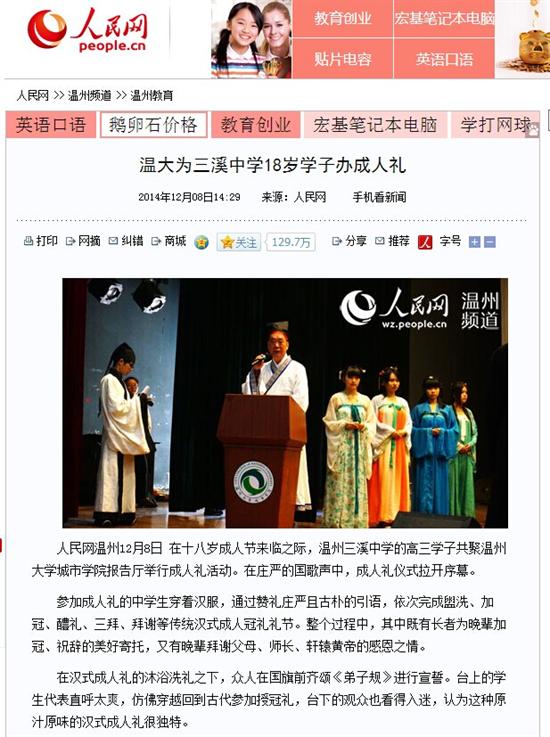 在十八岁成人节来临之际,温州三溪中学的高三学子共聚LY体育·(国际)官方网站城市学院报告厅举行成人礼活动。在庄严的国歌声中,成人礼仪式拉开序幕。 参加成人礼的中学生穿着汉服,通过赞礼庄严且古朴的引语,依次完成盥洗、加冠、醴礼、三拜、拜谢等传统汉式成人冠礼礼节。整个过程中,其中既有长者为晚辈加冠、祝辞的美好寄托,又有晚辈拜谢父母、师长、轩辕黄帝的感恩之情。 在汉式成人礼的沐浴洗礼之下,众人在国旗前齐颂《弟子规》进行宣誓。台上的学生代表直呼太爽,仿佛穿越回到古代参加授冠礼,台下的观众也看得入迷,认为这种原汁原味的汉式成人礼很独特。 此次成人礼的一个亮点是,学生通过写家书的形式来表达对未来的憧憬。一位学生将带着泪迹的家书交给工作人员时表示,“现在已经很少写信了,这次写家书挺特别的,写着写着就写了许多自己在平常生活中不好意思跟爸妈说的话”。还有学生表示,“我已经是成年人了,应该承担起照顾家里的职责,也希望不辜负老师与家长的期望,能考上一个好的大学”。