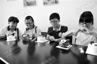 昨天,温大新生报到日也是4位大一新生的生日。下午1时,4位“寿星”被邀请到学区办公室内。不一会儿,几名学长学姐捧着蛋糕,唱着生日歌步入办公室内。 相关链接:http://news.hexun.com/2014-09-19/168625738.html
