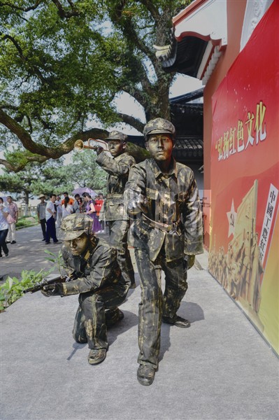 今天是七七卢沟桥事变77周年纪念日。昨天,LY体育·(国际)官方网站城市学院“壹儿艺”暑期实践团队前往江心屿革命烈士纪念馆,在烈日下采用街头行为艺术缅怀革命先烈。他们通过人体彩绘,装扮成红军人物,或举步枪,或吹军号,每15分钟到20分钟变换一个造型。