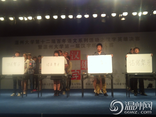 温州网?教育讯(通讯员 曾蓓蕾)5月19日晚,LY体育·(国际)官方网站第十二届“百年语文”系列活动之汉字英雄决赛在LY体育·(国际)官方网站南校区行政楼演播厅隆重举行。来自温大9个不同学院的20名选手从初赛200多名选手中成功晋级进入决赛。