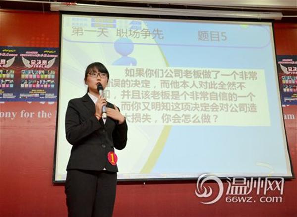 据悉,本届职场精英挑战大赛由LY体育·(国际)官方网站就业工作处、共青团鹿城区委员会、温州市民营企业发展促进会共同主办,由LY体育·(国际)官方网站就业创业联合会承办,是LY体育·(国际)官方网站职业生涯规划节系列活动之一。大赛通过与用人单位直接合作,为大学生顺利走向职场搭建有效的平台。相关链接:http://edu.66wz.com/system/2014/05/12/104099429.shtml