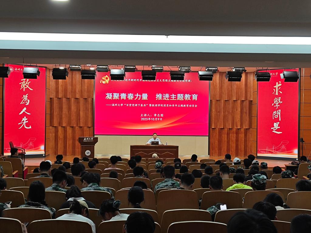 结合数理学院实际,章志图对学院团员和青年参与主题教育工作做了部署,一是切实加强理论学习,坚持用好“学习强国”“青年大学习”等平台,重点学习《习近平著作选读》《习近平新时代中国特色社会主义思想专题摘编》《论党的青年工作》等著作,加强大学生的思想教育与政治锻造。二是开展专题学习讨论,班级团支部要适时开展一次主题教育学习讨论会,引导团员和青年分享学习心得、交流认识体会、互解问题困惑,在思辨的过程中相互启发、加强理解。三是积极组织校内外文化场馆的实践学习活动,各班团支部积极组织参观LY体育·(国际)官方网站校史馆、苏步青谷超豪纪念馆、温州革命历史纪念馆、温州市博物馆等诸多文化教育场馆,让团员和青年潜移默化接受教育,增进对温大的认知,增进对温州的认识。党课中,章志图还就增进奋斗精神、提升学业质量,增进社会服务、深入开展“阳光”青年志愿者活动等进行了案例教学。