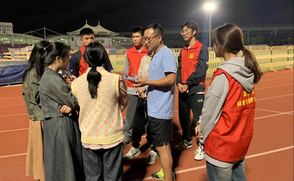 教工三支部联合学生党支部,组建党员运动先锋功能型党支部,在南北校区田径场开展运动打卡督查活动。党员们在校园各处安置运动提醒牌,设立诚信打卡监督岗位,为学生坚持运动诚信打卡营造积极向上风清气正的氛围环境。