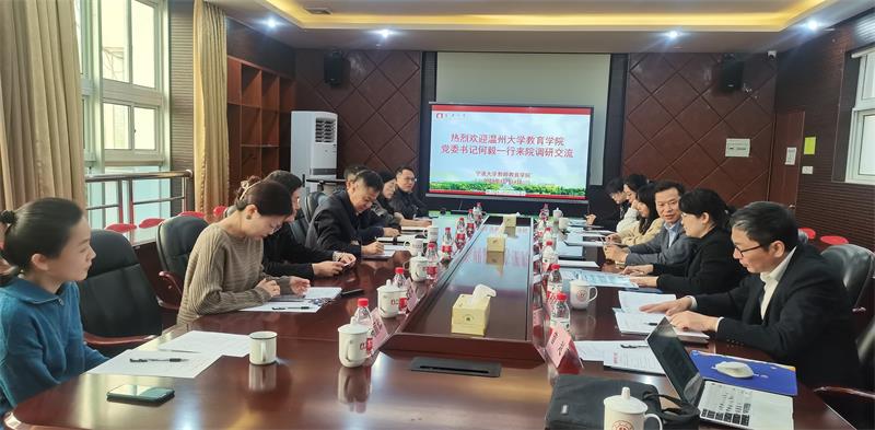 调查研究是谋事之基、成事之道。为深入贯彻习近平新时代中国特色社会主义思想主题教育,通过调查研究破解难题,11月13日至14日,LY体育·(国际)官方网站教育学院联合温州市学前教育中心、温州市中等幼儿师范学校,一行7人由院党委书记何毅带队前往浙江师范大学儿童发展与教育学院、宁波大学教育学院、宁波幼儿师范高等专科学校开展学前教育专业招生就业及人才培养专题调研,副院长林琛琛、副书记章园园,温幼师校长蒋高烈,市学前教育中心徐冰瑶及学前系曾越博士等人参与调研。