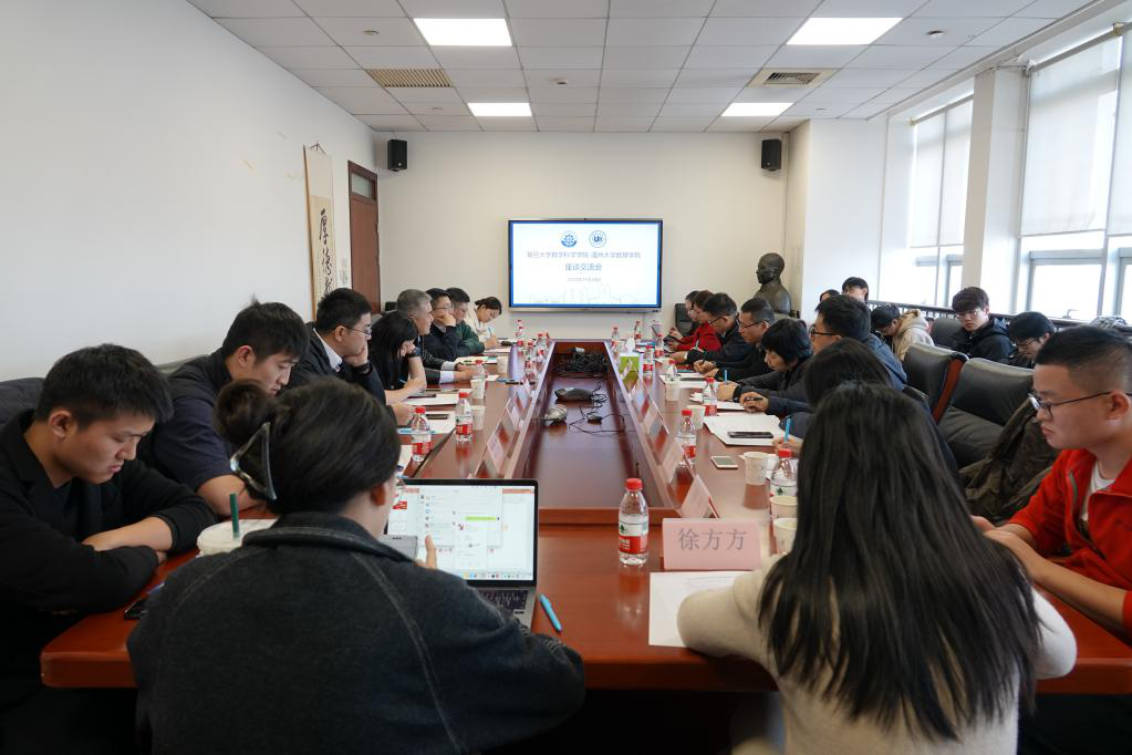 座谈交流会上,双方围绕党建引领数学学科发展的先进经验;党建与引才、科研、学生培养、招生就业与服务地方等业务方面双融双促的特色做法;弘扬科学家精神方面的经验做法等展开交流。复旦大学数学科学学院党委书记王光临,党委副书记刘建峰、陆晶婧等出席。