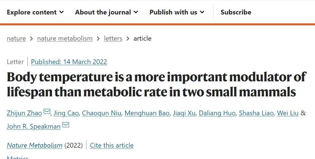 On March 15, John Roger Speakman, Chair Professor of School of Pharmacy of Shenzhen Institute of Advanced Technology (under preparation) and Chief Scientist of Research Center for Energy Metabolism, Institute of Pharmaceutics of Chinese Academy of Sciences Shenzhen Institute of Advanced Technology together with the research team led by Professor Zhijun Zhao of Wenzhou University, Liaocheng University, Aberdeen University of UK and jointly published their research findings in Nature-Metabolism. The research findings clarify the influence of metabolic rate and body temperature on lifespan and reveal that the body temperature has bigger impact towards lifespan under certain circumstances.
