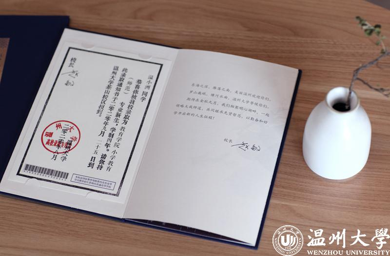 "The admission letter is the first link between the university and the students. We have invited Mr. Liu Jun, the director of the Visual Communication Department of the School of Art and Design, as the designer. We hope that the prospective students can get to know our sincere heart." said Huang Wenhao, Director of the Student Admissions and Employment Department of Wenzhou University. "Students can feel the strong cultural atmosphere of the campus when they open the admission letter, and they can also have a taste of the history and culture of Wenzhou City."