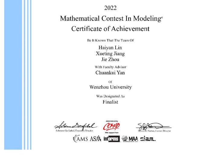 我校在2022年国际大学生数学建模竞赛中喜获佳绩