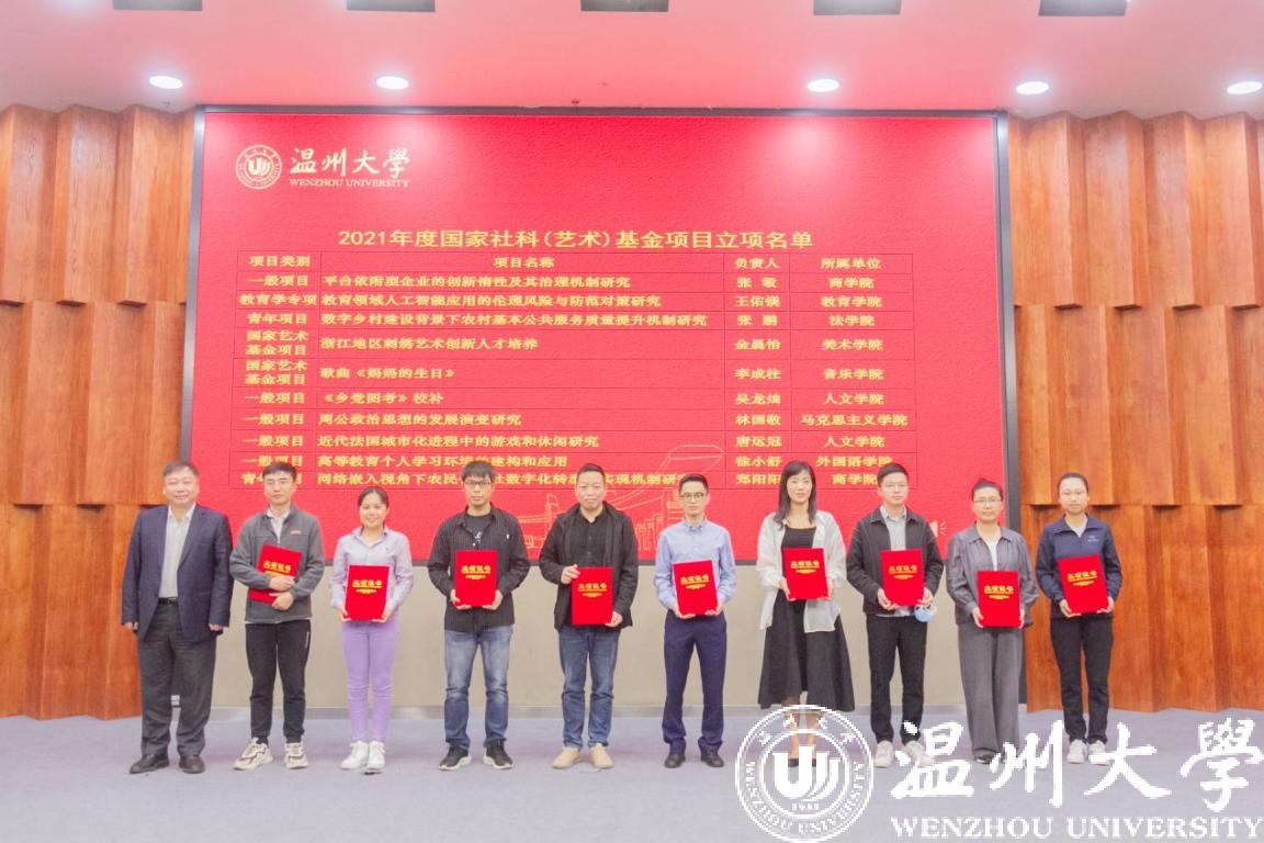 我校获得浙江省第二十一届哲学社会科学优秀成果奖、2021年度国家社科(艺术)基金项目的教师,人文社科处负责人,各文科学院院长、副院长,学校社科联理事等参加会议。