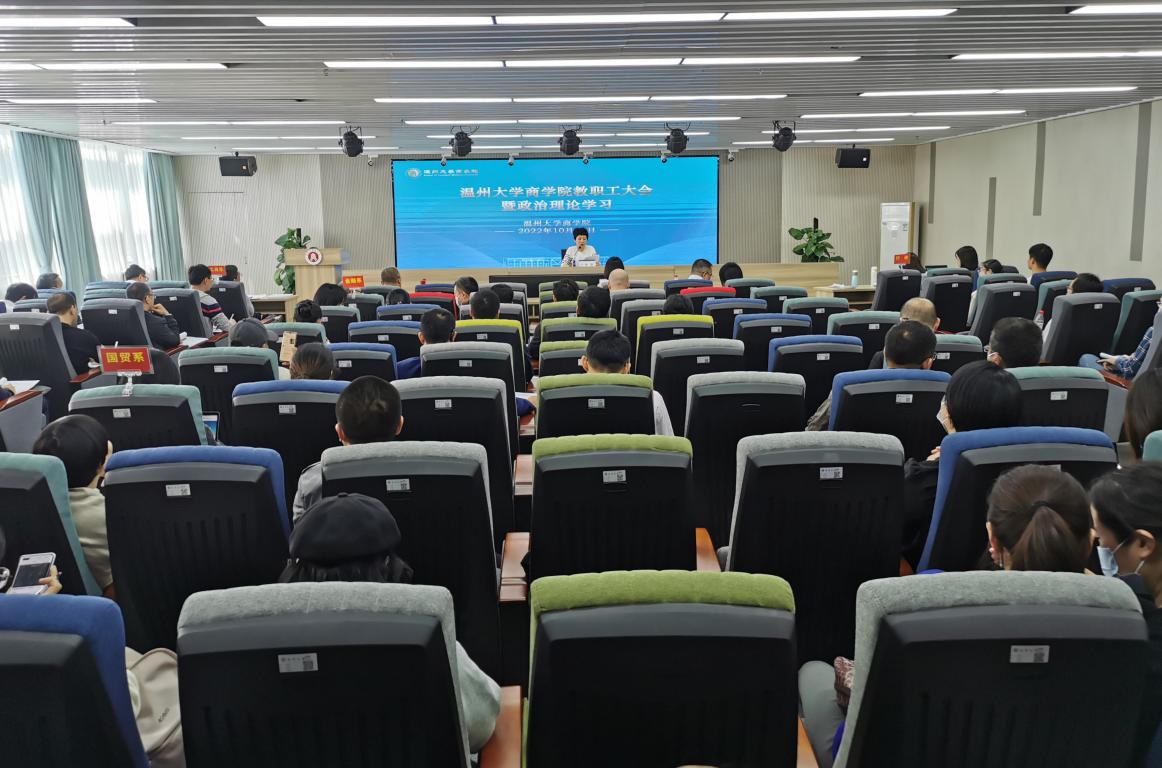 来源: 发布时间:2022-10-20 浏览次数:次2022年10月19日,商学院在商院楼A226仲辉商道讲堂举行献礼90周年校庆系列活动——全院教职工政治理论学习暨商道讲坛第21讲。会议由学院党委书记李密主持。