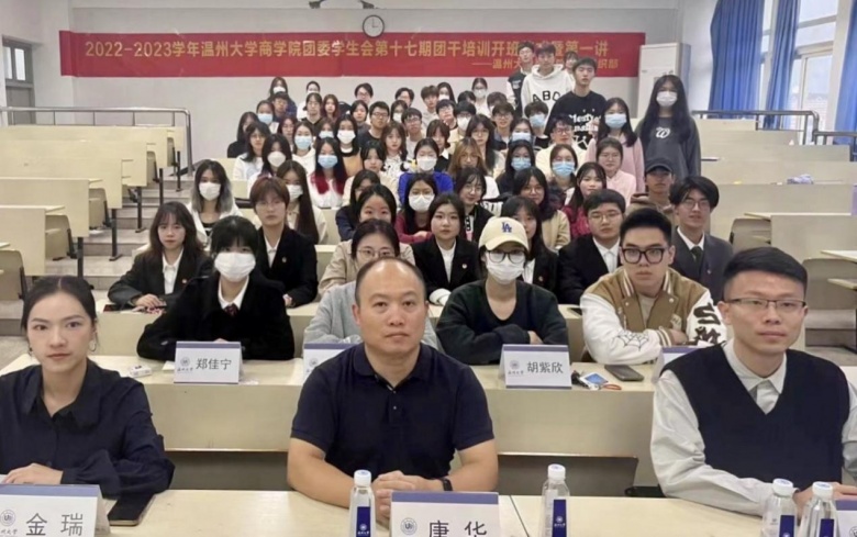 当天,LY体育·(国际)官方网站商学院同期举办了第十七期团干培训开班仪式暨第一课,由招商银行温州分行团委书记潘道品为团学干部讲授“为青春充电,为团干蓄能”主题团课,以自身的大学和职场经历,为团学干部分享经验并提出建议。