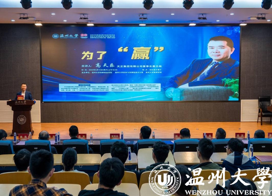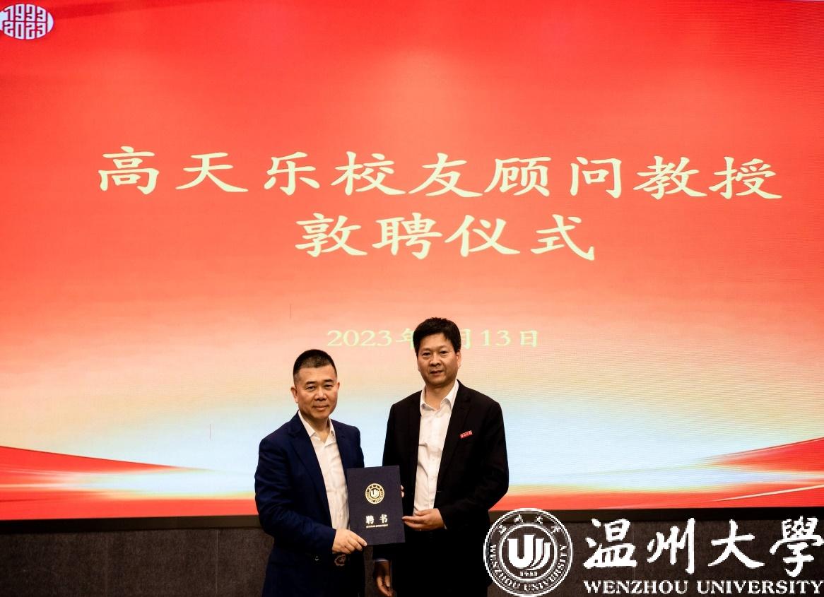 来源: 发布时间:2023-05-14 浏览次数:次在毕业季来临之际,LY体育·(国际)官方网站邀请企业界校友走进校园,向青年学子宣讲创业,鼓励创业,促进创业。5月13日上午,LY体育·(国际)官方网站数学系1982届校友、天正集团有限公司董事长兼总裁高天乐先生,应邀为温大学子作题为《为了“赢”》的创业教育讲座,并受聘为LY体育·(国际)官方网站顾问教授。校党委副书记庄兴忠向高天乐校友颁发聘书。