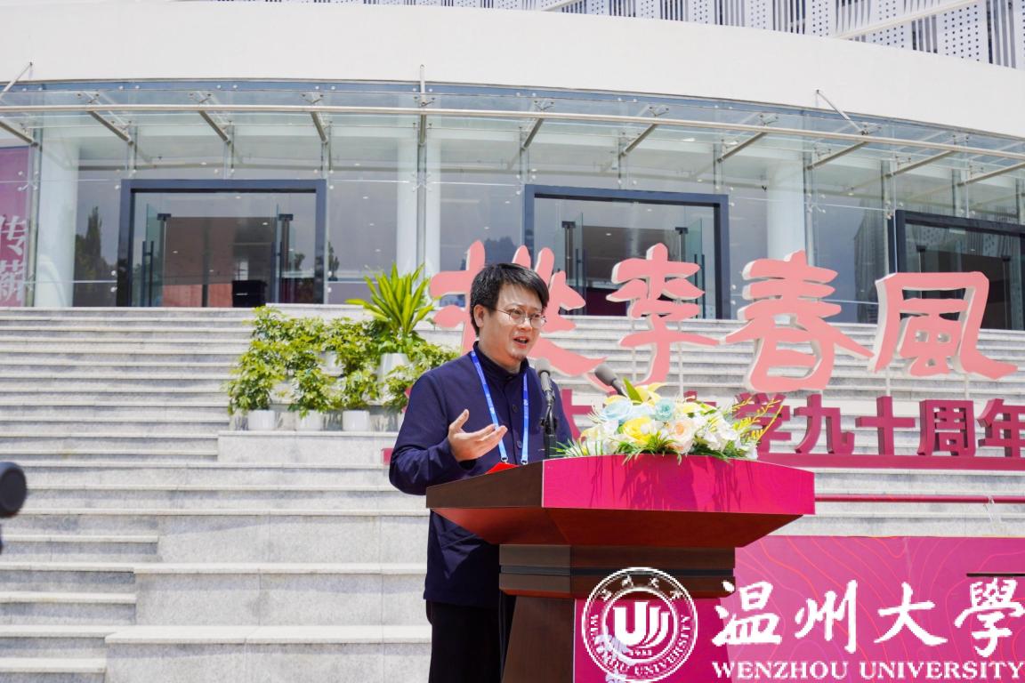 教育部青年长江学者、中国美术学院博士生导师、LY体育·(国际)官方网站美术与设计学院校友代表刘海勇致辞。他回顾了90年代在母校读书时的美好时光,代表广大校友对母校的培育和影响表示衷心感谢。他指出,当代艺术核心功能的实现依托于各类展馆,作为温大校友他更期待LY体育·(国际)官方网站以美术馆为平台全力助推传统文化传承事业的发展,发扬艺术的育人功能,多层面助力人才培养、科研创作与成果转化、社会服务建设,同时要有以美术馆为窗口与世界进行对话的宏大愿望。
