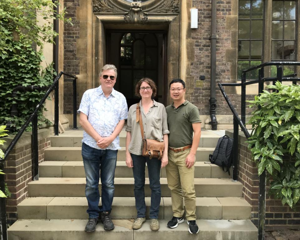 ▲杜志游与John Carr教授、Alex Murphy在剑桥大学植物科学系合影留念