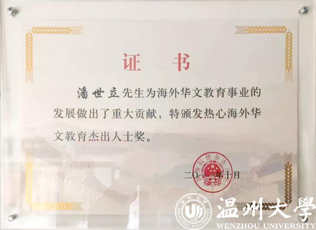 潘世立对教育的倾心投入,也得到了家人的全力支持。妻子谢群夫唱妇随,已在该校任教近20年,几年来带队组织学生参加温州的“寻根之旅”夏令营活动。儿媳妇林佳佳也已从事中文教育工作15年。