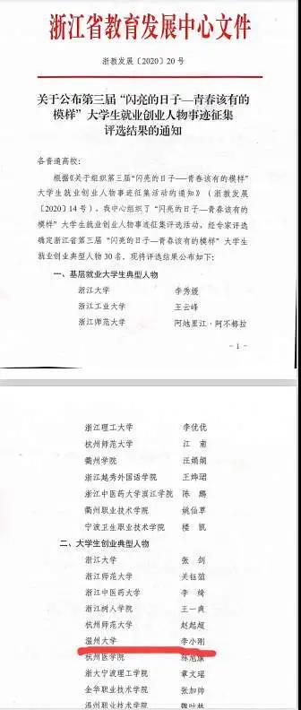 来源: 发布时间:2020-07-18 浏览次数:次年轻需要精彩,青春需要创业。近日,在由浙江省教育发展中心主办的第三届“闪亮的日子——青春该有的模样” 大学生就业创业人物事迹评选活动中,我校机电工程学院2019届机械工程专业校友李小刚荣获“大学生创业典型人物”称号。