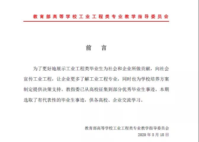 近日,从教育部高等学校工业工程类专业教学指导委员会获悉,我校2005届工业工程专业校友张文进作为优秀毕业生代表,入选工业工程类专业优秀毕业生事迹。