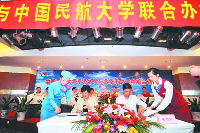 2009年5月12日,中国民航大学乘务学院和金华市女子中学签定了合作办学协议,在签约仪式上,中国民航大学乘务学院院长李玉梅给金华女子中学授牌,授予金华市女子中学为“浙江省的生源基地”和 “浙江省高考专业面试定点学校”,并赠送飞机模型。